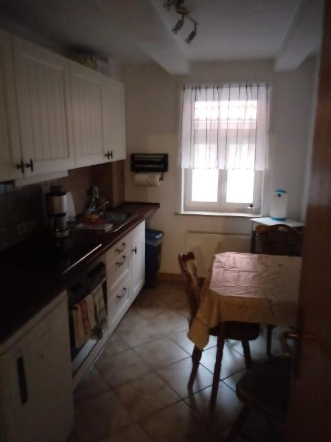 K?che mit Einbauk?che, Tisch, 3 St?hlen, Miniofen, Mikrowelle